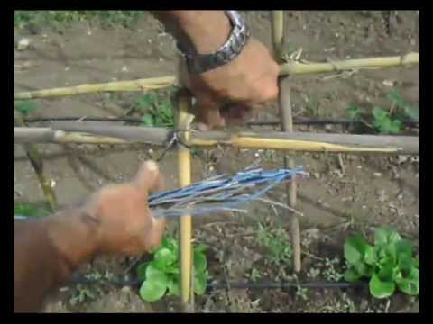 Se utilizan tutores guías de una altura igual a la que vaya a tener la planta. Los palos deben ser resistentes y rígidos, es decir, que no se doblen demasiado y que puedan soportar peso suficiente. Los tutores acostumbrab a ser cañas de bambú o palos de metal y pueden encontrarse en las tiendas de jardinería. Si las plantas son grandes será necesario utilizar varios tutores. Deben clavarse a suficiente profundidad para que no cedan. Cuando llueve el terreno se vuleve blando y eso provoca que los palos cedan. Para reforzar la rigidez del tutor se puede clavar el palo haciendo primero un agujero de una profundidad de 30cm y rellenandolo con piedras y tierra.